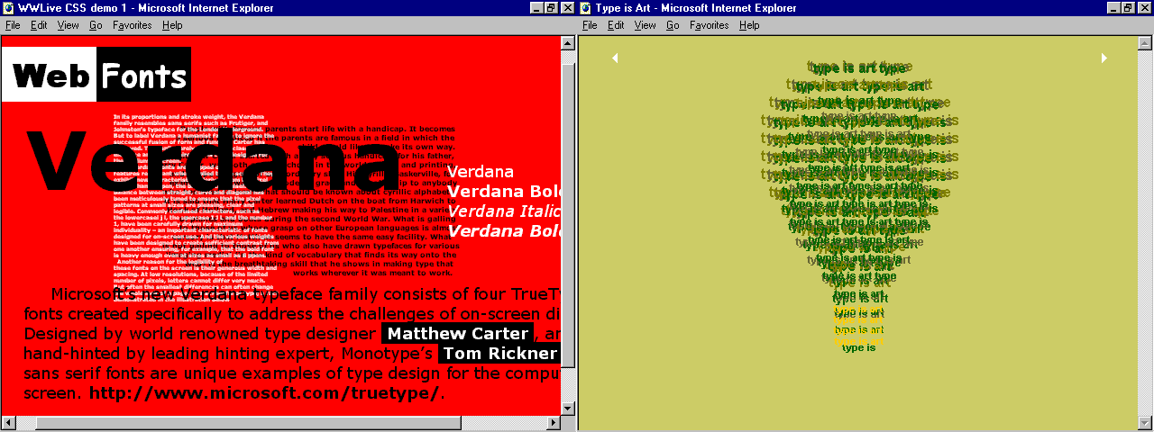 또한 마이크로소프트와 넷스케이프 내부의 많은 훌륭한 사람들이 표준을 지원하기 위해 열심히 노력했다는 점도 덧붙여야 합니다. 인터넷 익스플로러 7은 Acid2 테스트를 통과하지 못했지만, 2009년에 출시된 인터넷 익스플로러 8은 Acid2를 완벽하게 통과했습니다.